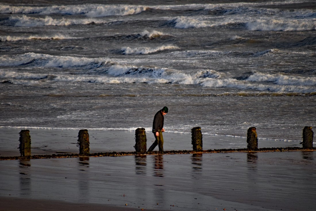 When I wander with my teeth chattering and my fingers freezing I find a sense of peace. Even when the ice or gales make for uncomfortable walking, the beach offers a myriad of interesting things. The tracks of seabirds, the colonies of shellfish, the patterns in the sand: the light picks out different features. Breaking waves and the sound of water retreating across the sands, with a chorus of gulls plaintively calling. Why do gulls sound so alone? Sunset skies dye the wet sand in glorious technicolour. The Sun, the Moon, and sometimes the stars, shimmer their fractured reflections across the restless waters. It’s so beautiful. It has become a holy place for me.