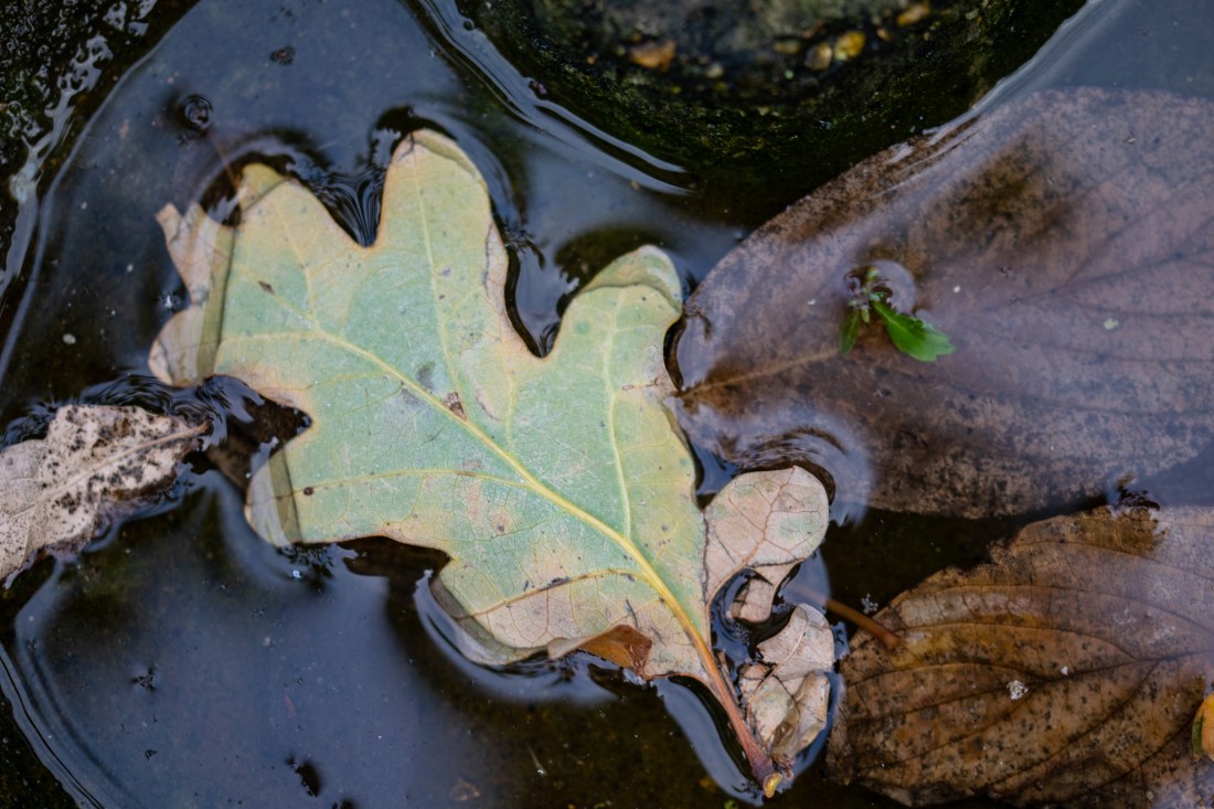 You see this leaf? It’s floating in the bird bath and making an intriguing pattern. Subtle colours and muted tones suit its retired status. The only thing left for the oak leaves is making leaf mould. But for now it makes a nice photo.